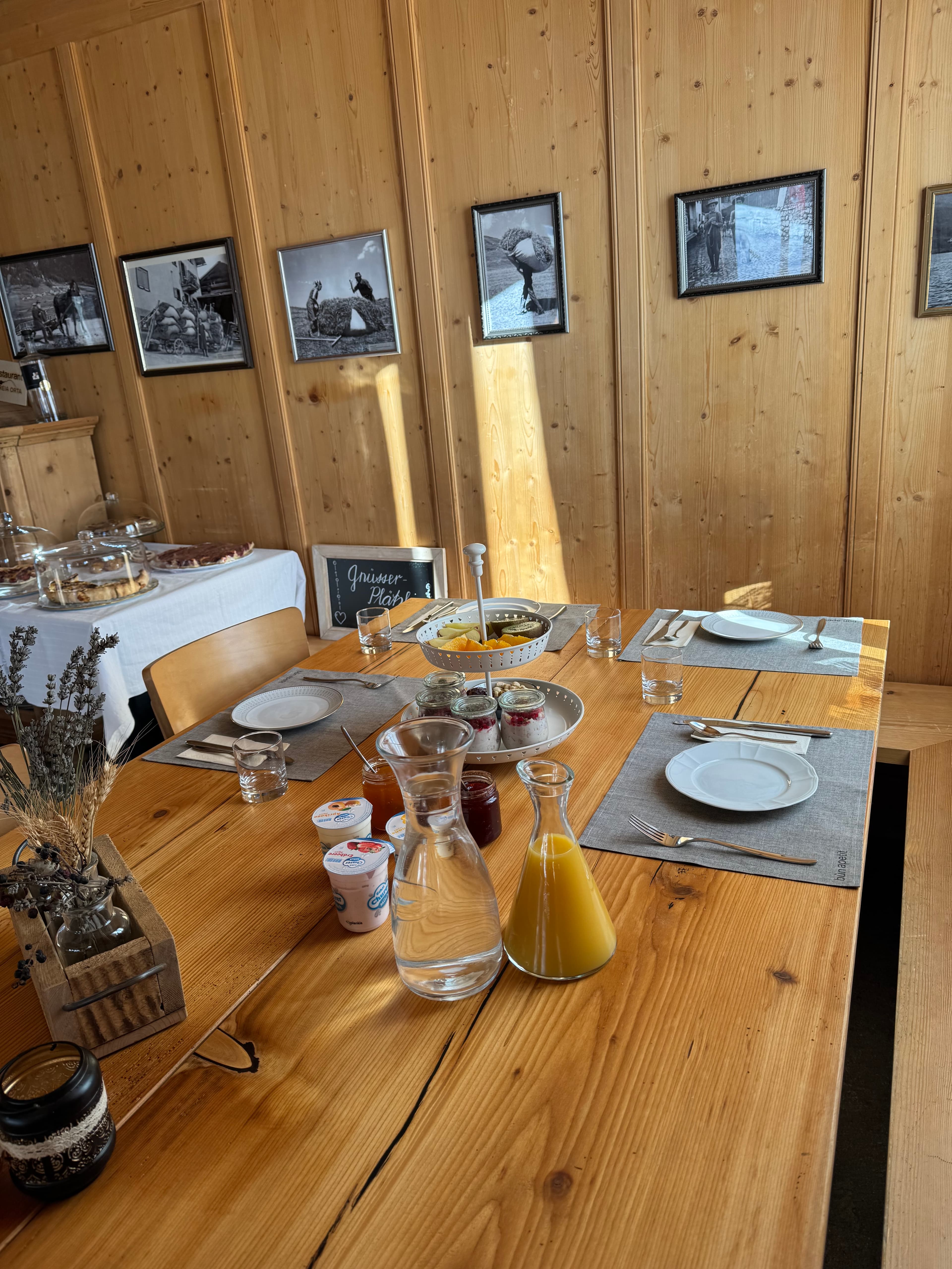 Das Buffet ist gefüllt mit leckeren Spezialitäten aus der Region. Hausgemacht und mit Liebe! Allfällige Unverträglichkeiten bitte bei der Anmeldung bekannt geben. Wir freuen uns auf deine Reservierung.